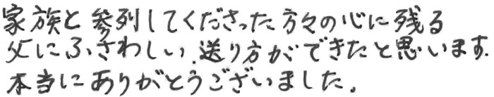 家族と参列してくださった方々の心に残る父にふさわしい送り方ができたと思います。本当にあ