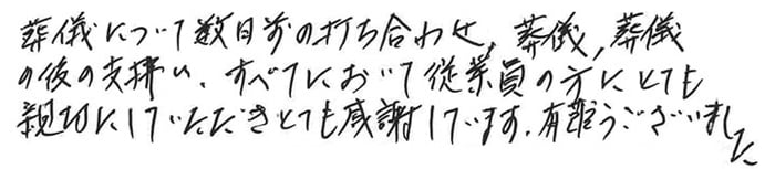 葬儀について数日前の打ち合わせ、葬儀、葬儀の後の支払い、すべてにおいて従業員の方にとて