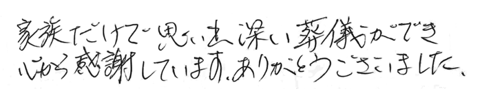家族だけで思い出深い葬儀ができ心から感謝しています。