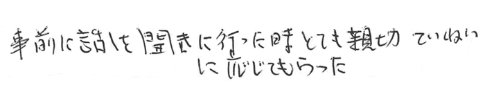 事前に話しを聞きに行った時とても親切丁寧に応じてもらった。