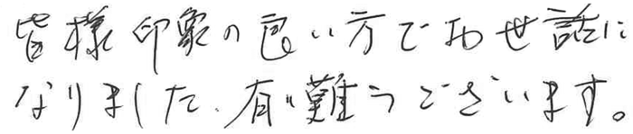接客対応、種々サービス行き届いており、非常に満足しています。有難うございました。