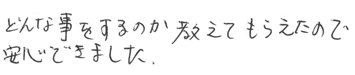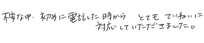 不安な中、初めに電話した時からとてもていねいに対応していただきました。