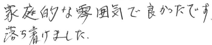 家庭的な雰囲気で良かったです。落ち着けました。 2017.4 I家