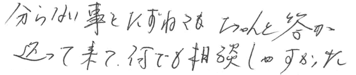 分からない事をたずねてもちゃんと答えが返ってきて、なんでも相談しやすかった 2017.4 K家