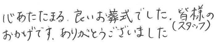 こんな小さな葬儀は始めてで、すごく淋しく思いましたが、上手に動いていただき有難うございました。