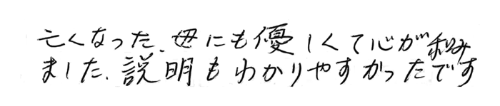 亡くなった母にも優しくて心が和みました。説明もわかりやすかったです。