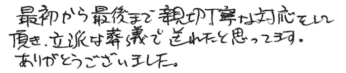 最初から最後まで親切丁寧な対応をして頂き、立派な葬儀で送れたと思っています。
