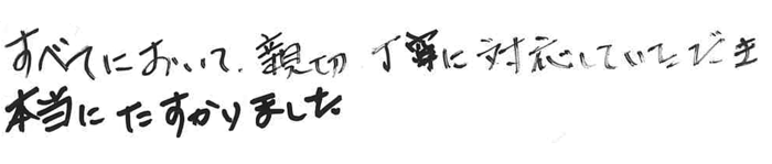 すべてにおいて、親切丁寧に対応していただき本当にたすかりました。 2017.10 S家