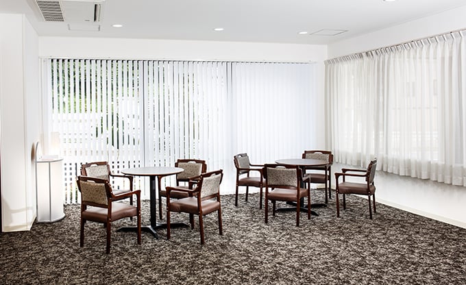 駐車場は会館横に30台程度とファミリーマート呉阿賀店横にある第二駐車場に30台程度ございます。(2020年9月のリノベーションにより、外観が茶色となっておりますので、ご注意ください)