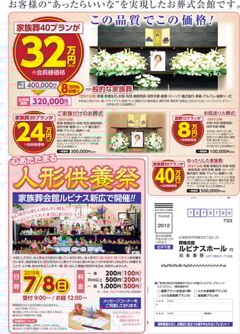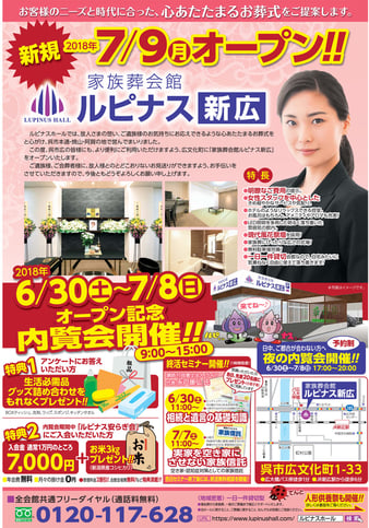 前回のホームページにてお知らせさせて頂いておりました家族葬会館「ルピナス新広」のオープンイベントの日程が決まりました!