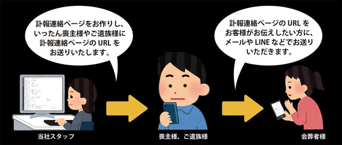 このページのURLをお客様ご自身より、ご親戚や関係各所にお送りいただけるので便利です。