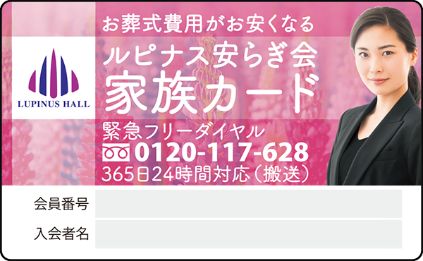 ルピナス安らぎ会にご入会をしているという証明を、ご家族やお身内にお伝えしておくためのカードをおつくりいたしました。