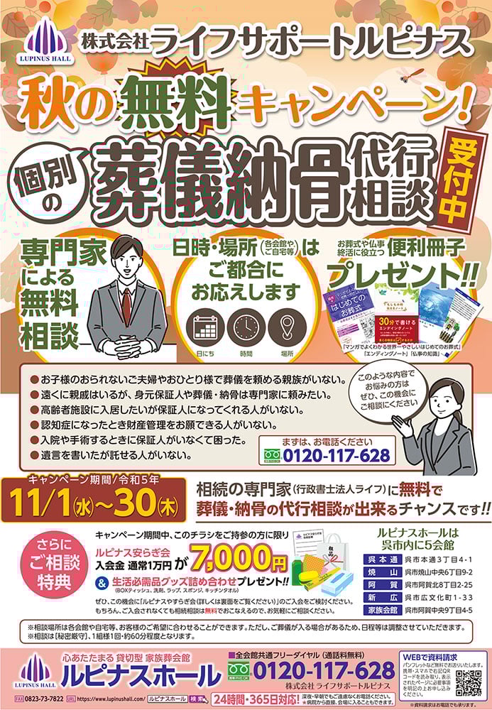 秋の無料キャンペーン「個別の葬儀納骨代行相談」受付中