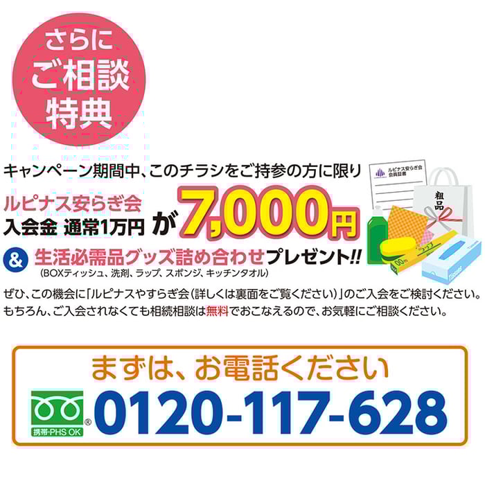 この機会にぜひご相談ください。 ※相談場所は各会館や自宅等、お客様のご希望に合わせることができます。ただし、ご葬儀が入る場合があるため、日程等は調整させていただきます。 ※相談は[秘密厳守]、1組様1回・約60分程度となります。