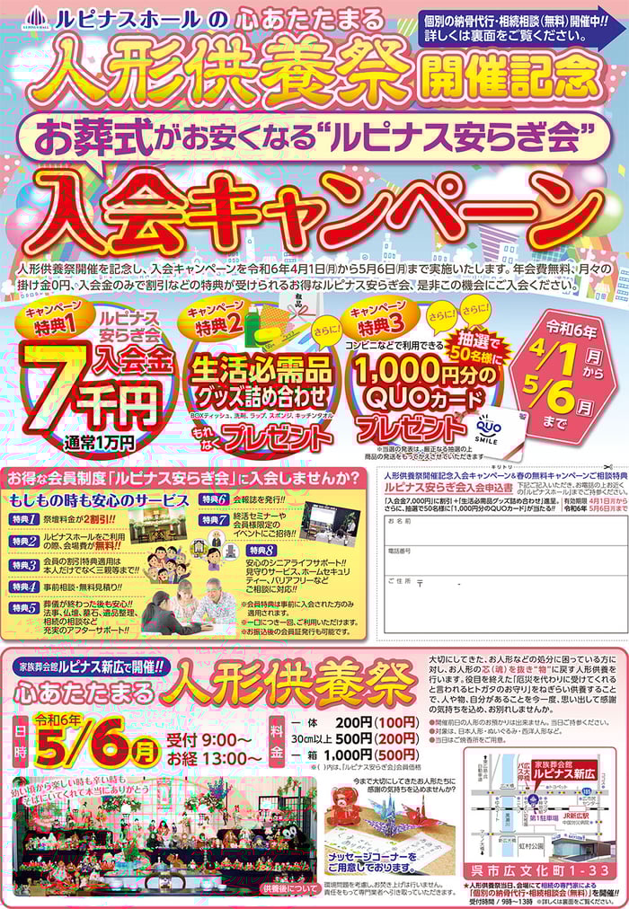 人形供養祭開催記念!入会キャンペーン!